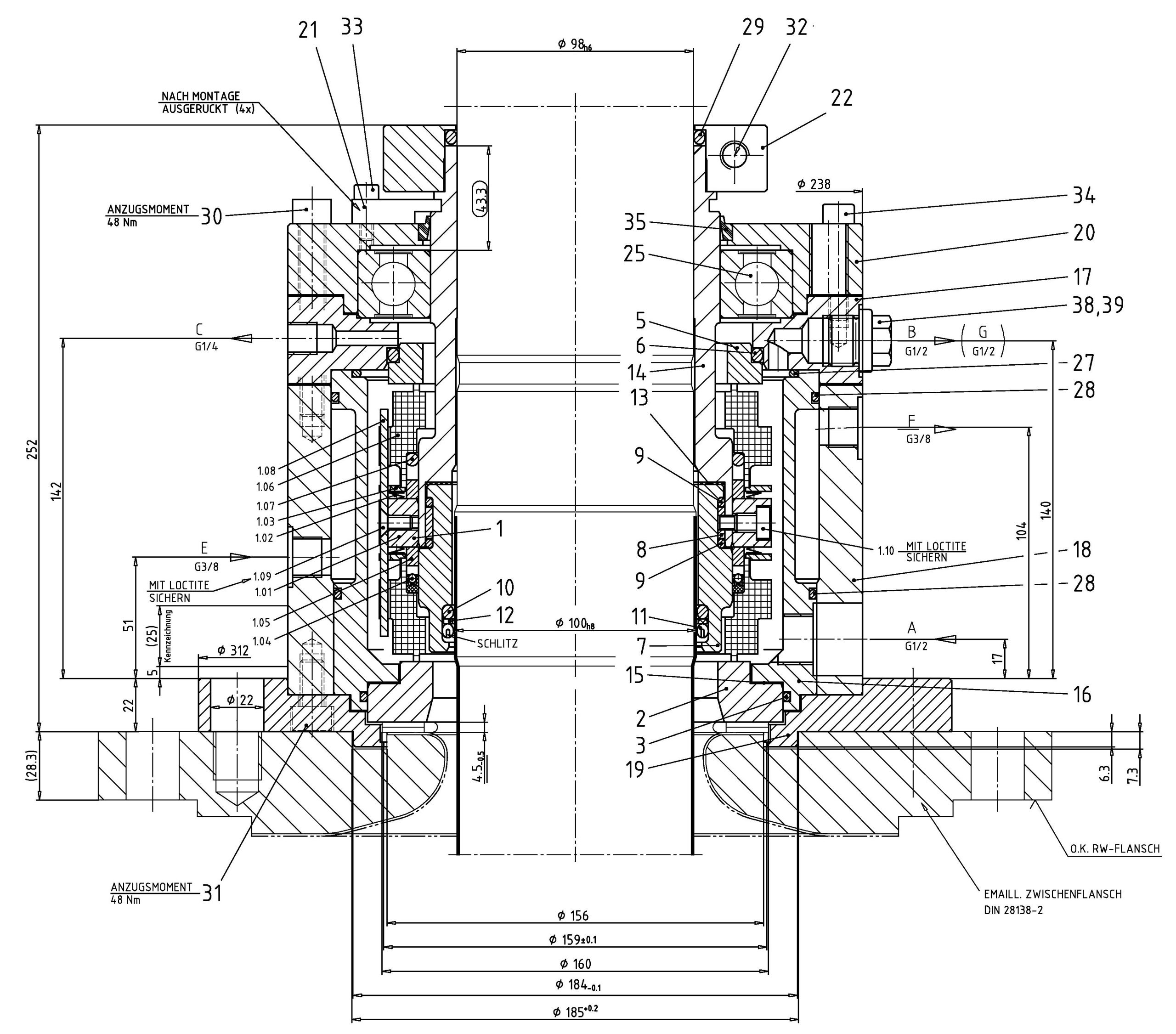 טפלון לבדו אינו מספיק כמשטח עבודה מכני. לכן, תכננו וייצרנו בבית המלאכה שלנו שרוול ממתכת  Hastelloy( סגסוגת- על עמידה לקורוזיה קיצונית( . שרוול זה הותקן על גבי הטפלון, כשהוא משמש  כמשטח הקשיח שמסתובב עם הציר. הוא נתמך על ידי מיסוב פנימי חדש שתוכנן להתאים למרווחים  המצומצמים.